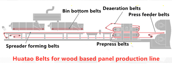 Our main belts have Pre-press Belt, Ventilation Belt, Spreader Belt, Press Infeed Belt, Bin Bottom Belt, Sanding Belt and etc in the production process of MDF, HDF, PB, OSB, SPB, LVL, and other wood boards.
